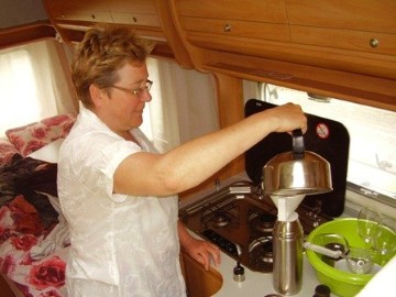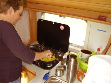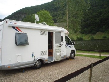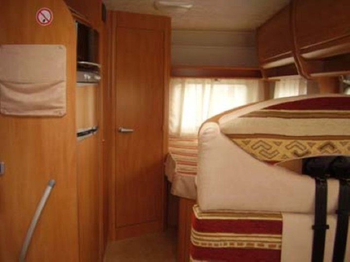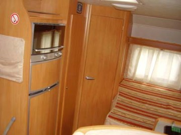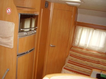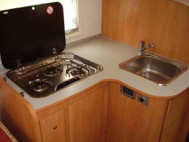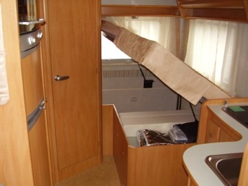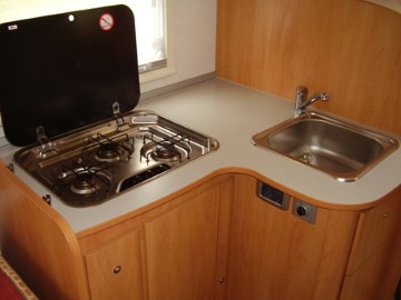 servostuur, 4 slaapplaatsen, hoekkeuken, Koel/vriessysteem van 150 L combinatie, gasoven.